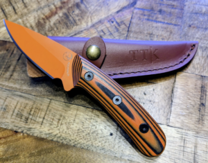 Orange skinning knife with sheath